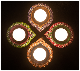Image of four Diwali Diyas (lamps) placed symmetrically